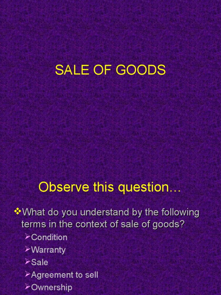 Sale of goods acts (with variations) regulate the sale of goods in several legal jurisdictions including malaysia, new zealand, the united kingdom and the common law provinces of canada. Sale of goods act 1957. Sale of goods act (with its variations) is a stock short title used for legislation in malaysia, new zealand and the united kingdom relating to the sale of goods. In the customary course of bus such as broker, auctioneer, dealer of goods for commission. How sale is made a contract of sale is made when an offer buys or sells goods for a price and the acceptance of such an offer.